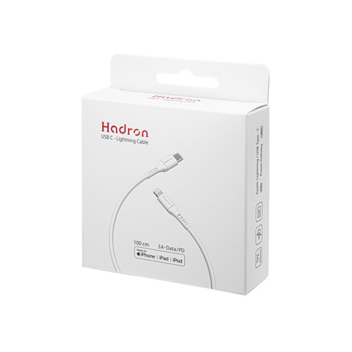 کابل شارژ و انتقال دیتا Hadron مدل HTC–C–L01، در دو رنگ سفید و مشکی ارائه می گردد. این کابل جهت شارژ سریع ( Power Delivery و Fast Charge ) و ارتباط محصولات Apple دارای درگاه Lightning به ادوات مجهز به درگاه USB-C مناسب می باشد. همچنین این محصول دارای گواهی MFI است. این محصول با طول 100 سانتی متر و روکش پلیمر TPE عرضه شده و مقاومتی مثال زدنی، نسبت به تنش های مکانیکی همچون کشیدگی و تنیدگی دارد. عبارت MFI و یا Made For Apple به محصولاتی اتلاق می گردد که توسط شرکت Apple تایید و در وبسایت آن شرکت قابل ارزیابی می باشد.